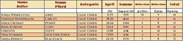 Erste Ergebnisse unserer Ausreit-Challenge für den April!