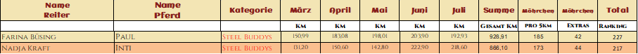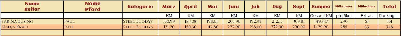 15* Tanja Romahn mit ihrem zuckersüßen Nagano  kamen auf 290,04km und holten sich zusammen mit ihren Extraaufgaben 131 Möhrchen